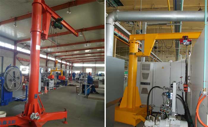 Mobile jib crane widely used in factories, mines, workshops, field, warehouse, small equipment installation. Mobile cantilever crane application occasions: factories and mines, workshop production lines, assembly lines, mechanical processing and heavy lifting of warehouses, docks and other occasions.