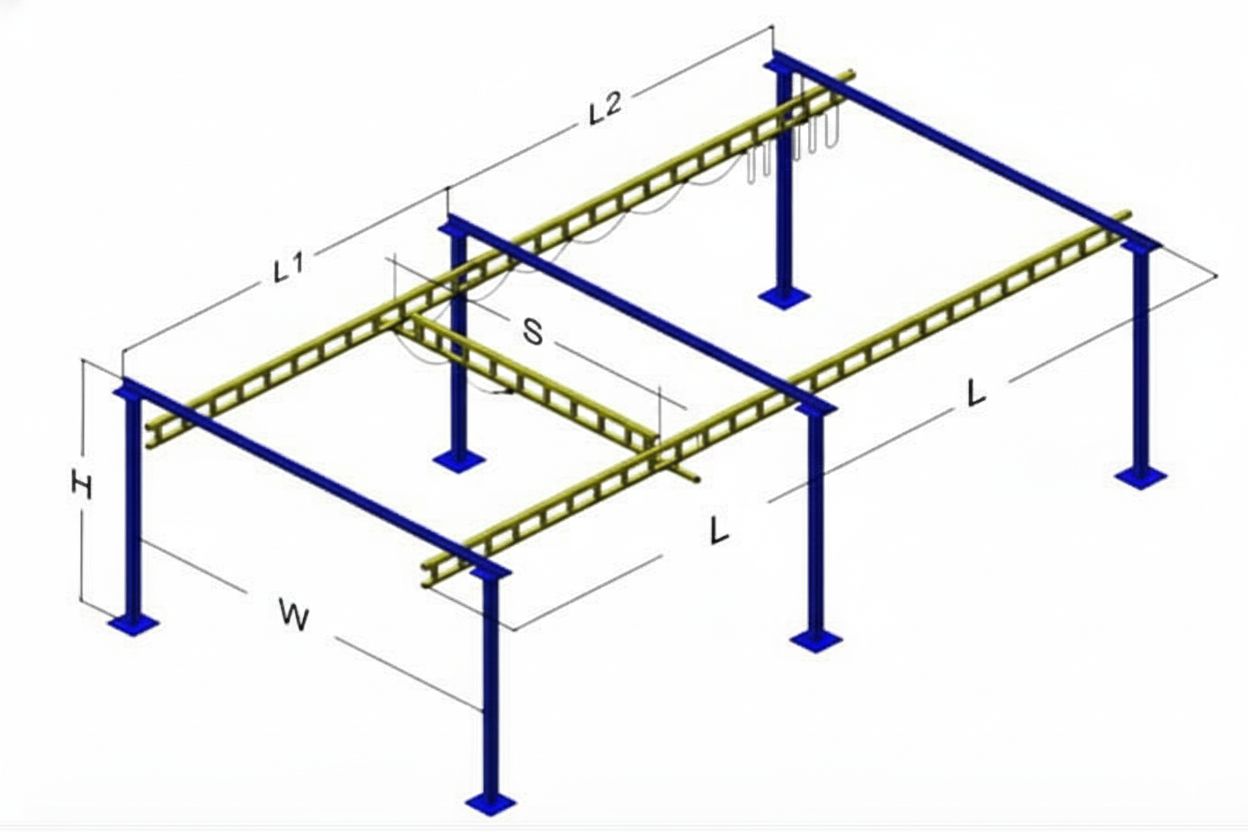 - Dimensions: W (Span) = ____ m, H (Height) = ____ m, L = ____ m, L1 = ____ m, L2 = ____ m